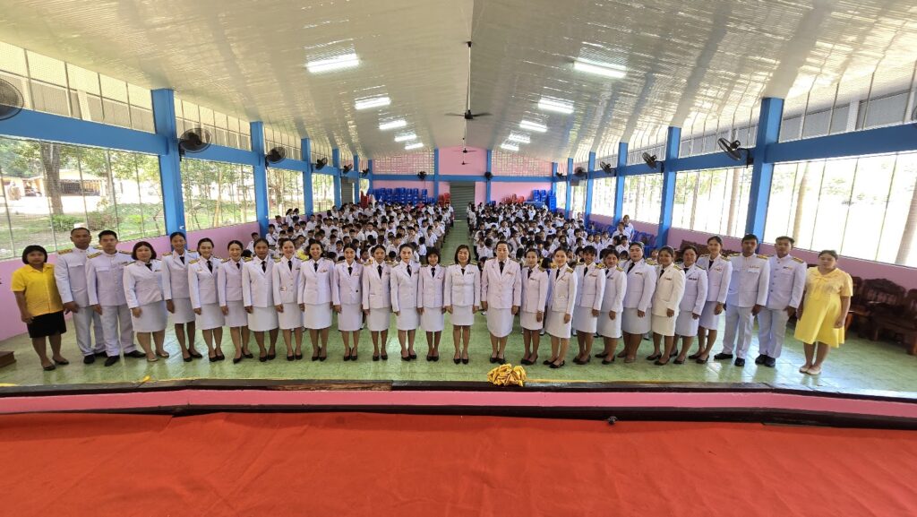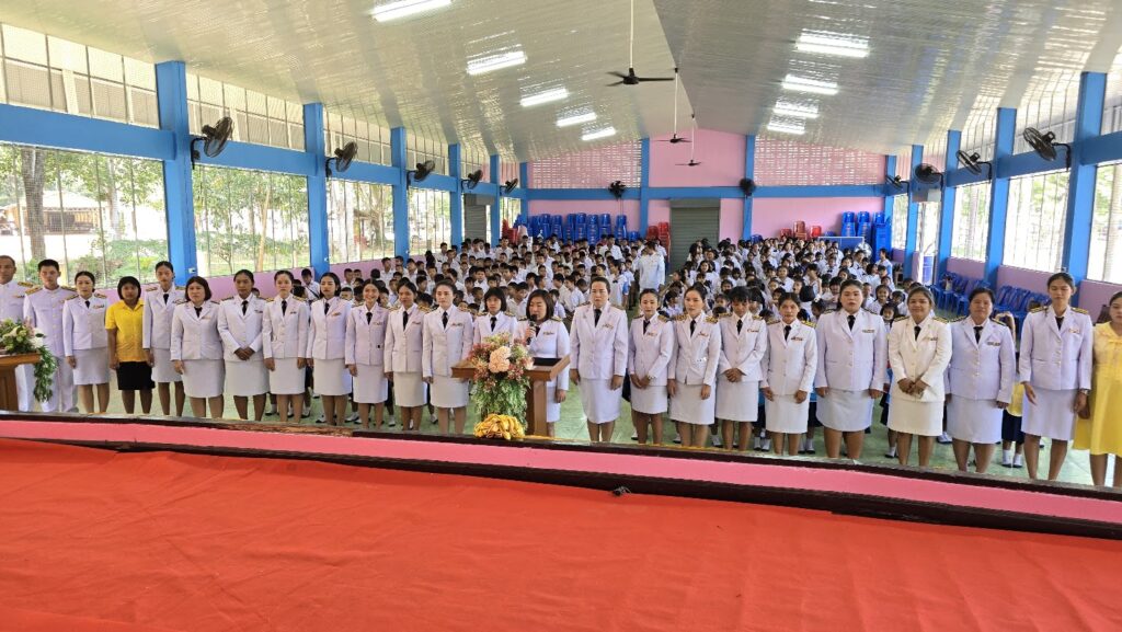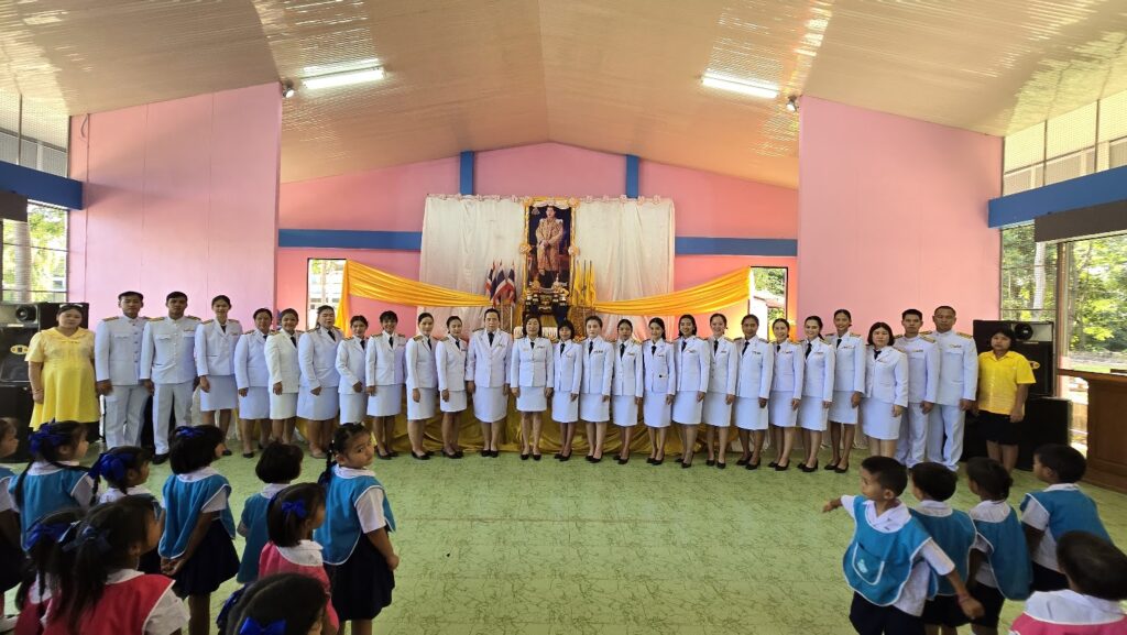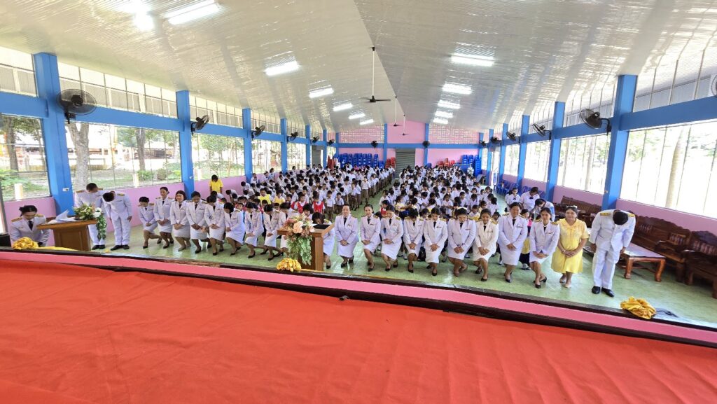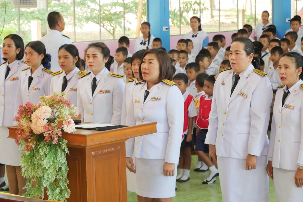 ในพิธีอันศักดิ์สิทธิ์นี้ คณะผู้บริหารสถานศึกษา คณะครู บุคลากรทางการศึกษา และนักเรียน ได้พร้อมใจกันเข้าร่วมเพื่อแสดงความจงรักภักดีและถวายพระพรชัยมงคลแด่พระบาทสมเด็จพระเจ้าอยู่หัว