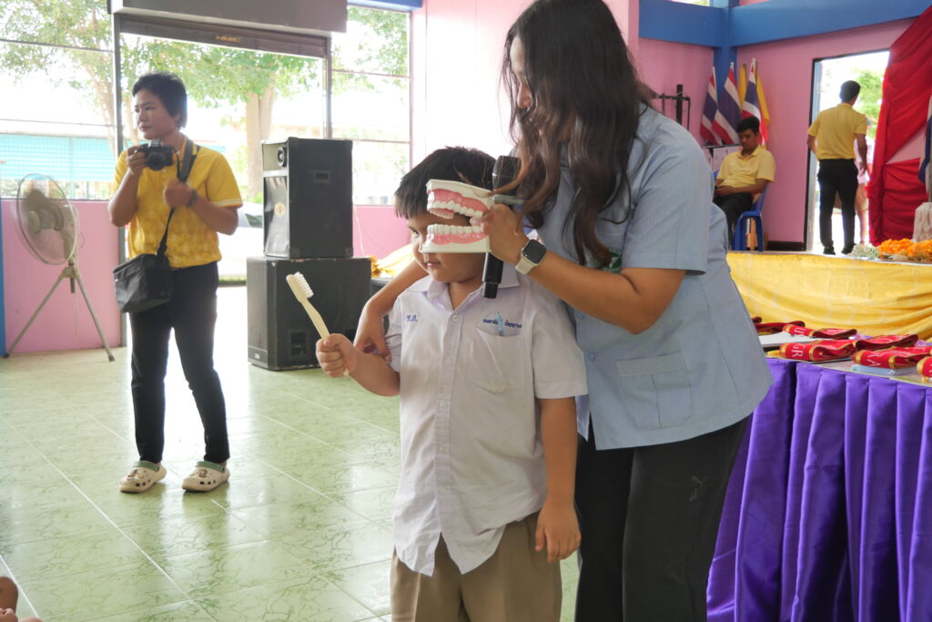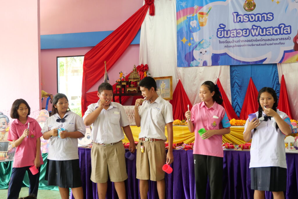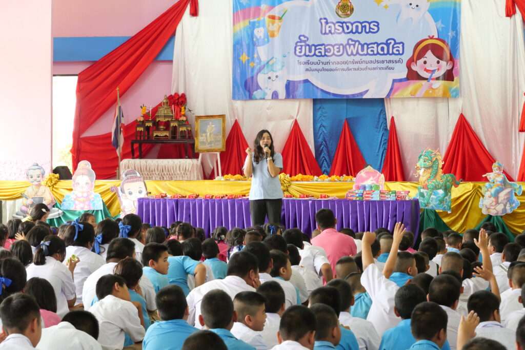 วันนี้ (30 กรกฎาคม 2568) นางสาวแววดาว ทับลา ผู้อำนวยการโรงเรียน นางสาวอัญชลี พรพิทักษ์กุล รองผู้อำนวยการ คณะครู บุคลากรทางการศึกษา และนักเรียนโรงเรียนบ้านท่ากลอย เข้าร่วมโครงการยิ้มสวยฟันสดใส สนับสนุนโดยองค์การบริหารส่วนตำบลท่าตะเกียบ เพื่อให้ความรู้เกี่ยวกับสุขภาพฟัน ช่องปาก และวิธีการแปรงฟัน ให้กับนักเรียนโรงเรียนบ้านท่ากลอย โดยมีรองปลัดองค์การบริหารส่วนตำบลท่าเกียบเป็นประธานในพิธีในครั้งนี้
