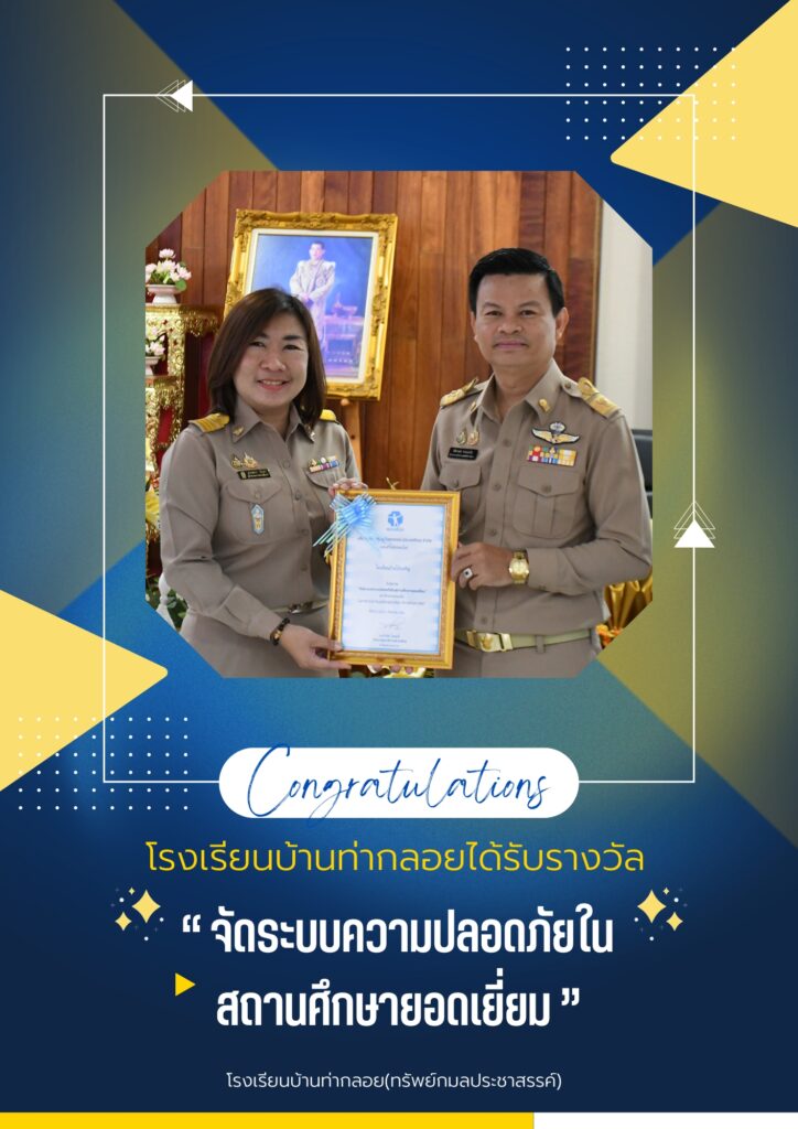 1.นางสาวแววดาว ทับลา ผู้อำนวยการโรงเรียน เข้ารับรางวัลโรงเรียนที่ “จัดระบบความปลอดภัยในสถานศึกษายอดเยี่ยม”